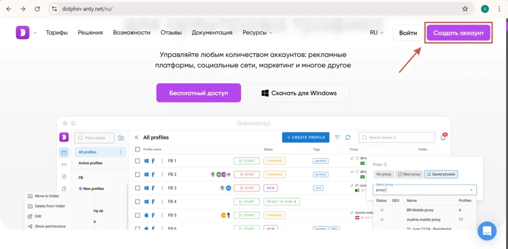 Установка Dolphin Anty занимает минуты: скачайте приложение для вашей операционной системы, зарегистрируйтесь и войдите в аккаунт. Бесплатный тариф сразу дает доступ к первым профилям без ограничений по времени.