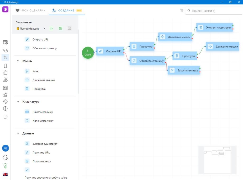 Антик Dolphin Anty эффективно обходит системы обнаружения фейковых аккаунтов на крупных платформах. Браузер создан российскими разработчиками с учетом нужд арбитражного трафика, криптотрейдинга и автоматизированного маркетинга. Он поддерживает работу в команде, облачную синхронизацию данных и автоматизацию рутинных задач.